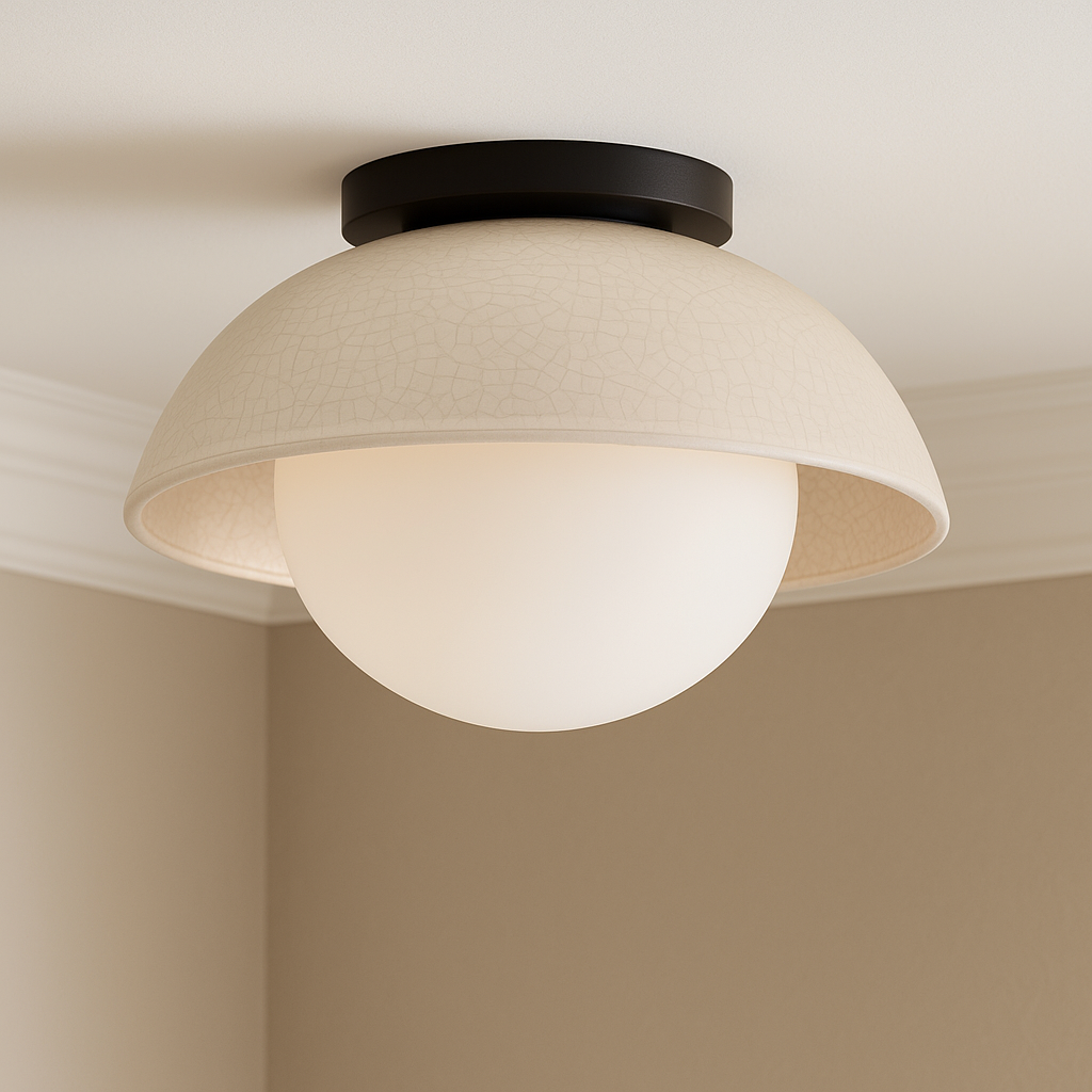 The Glaze Small Flushmount light pairs soft opal frosted glass with a satiny ceramic shade elevated by a fine, subtle ivory stained crackle inspired by hand-crafted tableware and fine ceramics that reveal the hand of the maker. Compelling enough to stand alone, the small flushmount also offers endless possibilities when installed in multiples or in combination with the Glaze large flushmount fixture and Glaze sconces.