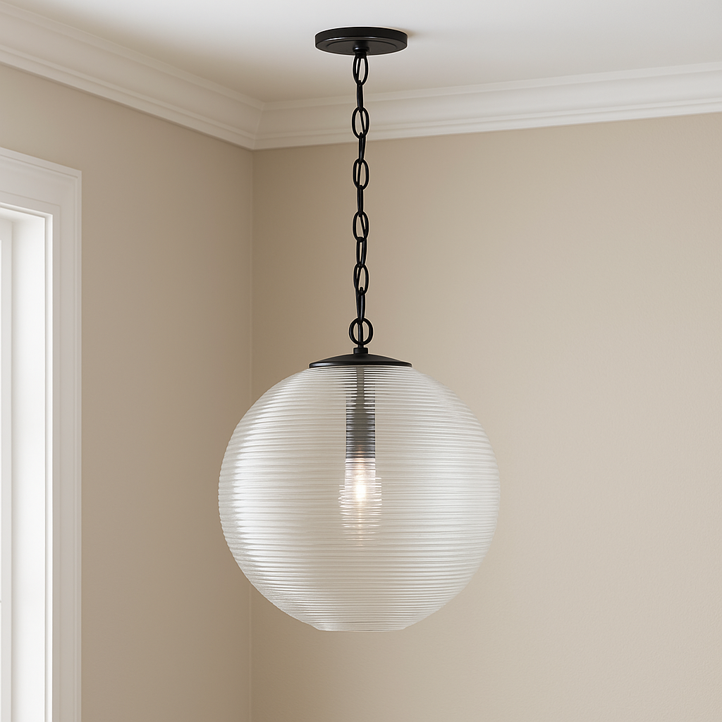 Minimalist style with maximum impact. Pairing designer details with a ribbed glass globe and Matte Brass finish, the Dolan Pendant creates an elegant aesthetic.
