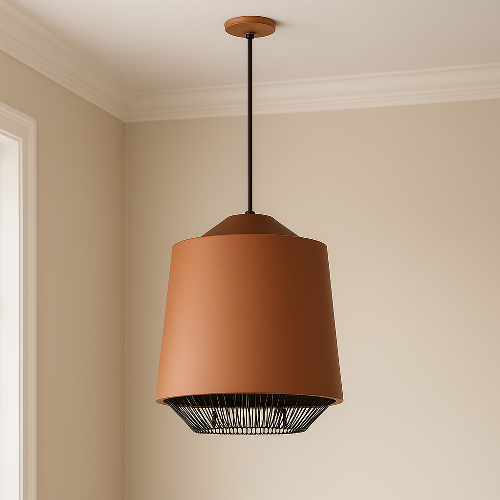 Both modern and industrial, the angular lines of these aluminum spun shades refresh a classic concept in a clean, contemporary execution. The shades - available in Brick, Black, and a Pale Gray powder coated finish, feature multiple joints and peaks in their form and at their bottom intentionally return inward. The shape at the bottom is not only attractive, but a cleverly conceived method to support a wire network of Black steel that forms a cage without visible hardware. Illuminated from within the spun metal shades in 3 varying sizes and shapes, the LED lamp provided shines light below and disperses through the wireway creating a beautiful radiating light pattern.