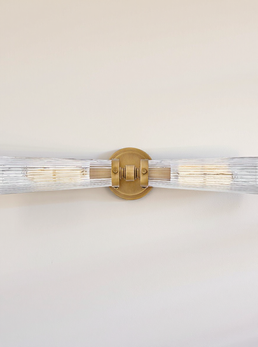 Add a dash of traditional brilliance into your every day with Jude. Featuring fluted glass held in place with decorative knobs, this family showcases timeless, traditional elegance with a unique finish. The light extends from either side, anchored in the middle for a silhouette that's as striking as it is functional.