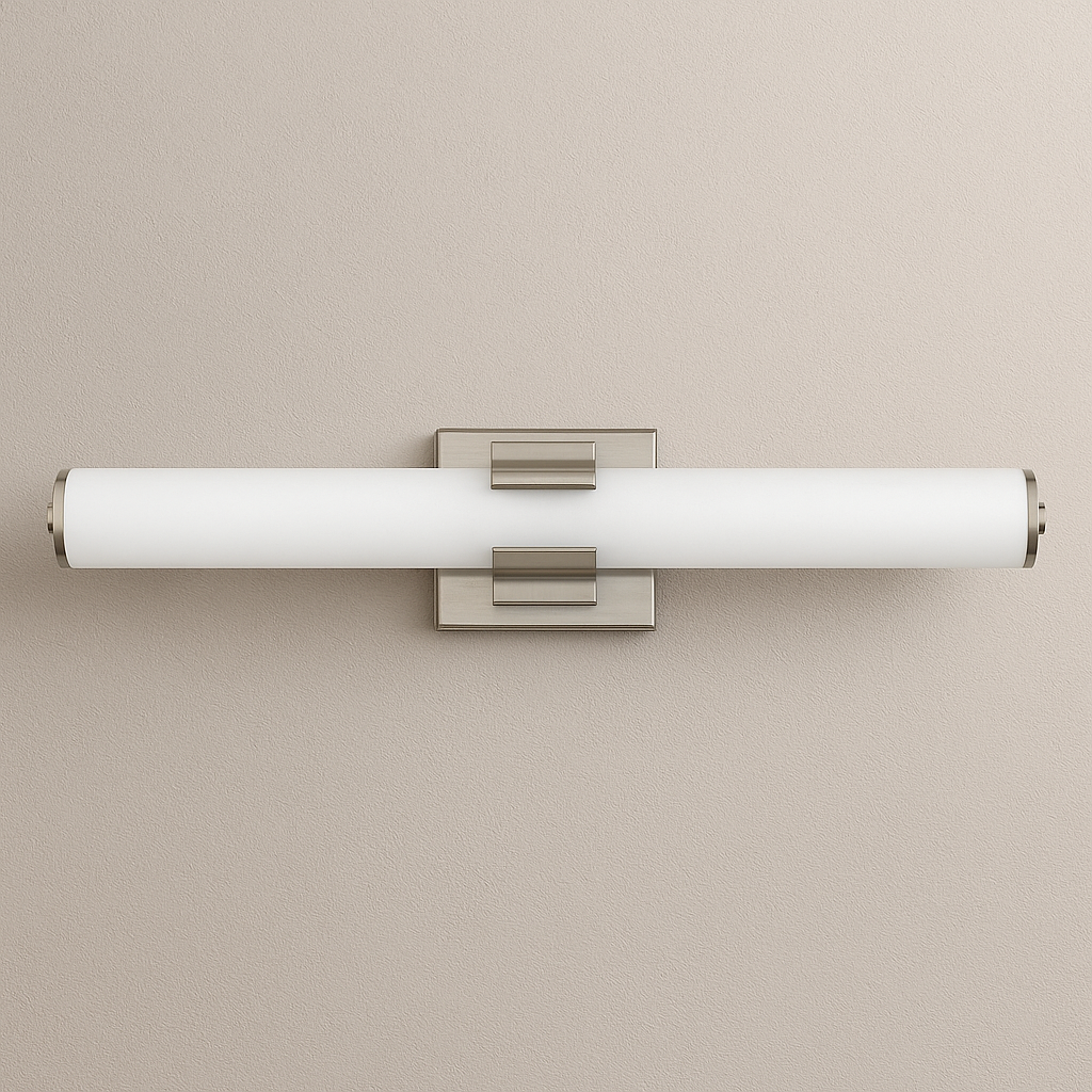 Bold and balanced are the defining elements of Aiden. A striking, signature cuff centers the etched white glass baton, while matching end caps complete the simple symmetry. The clean transitional silhouette can be mounted vertically or horizontally with Invisimount for a look that is as flexible as it is fashionable.