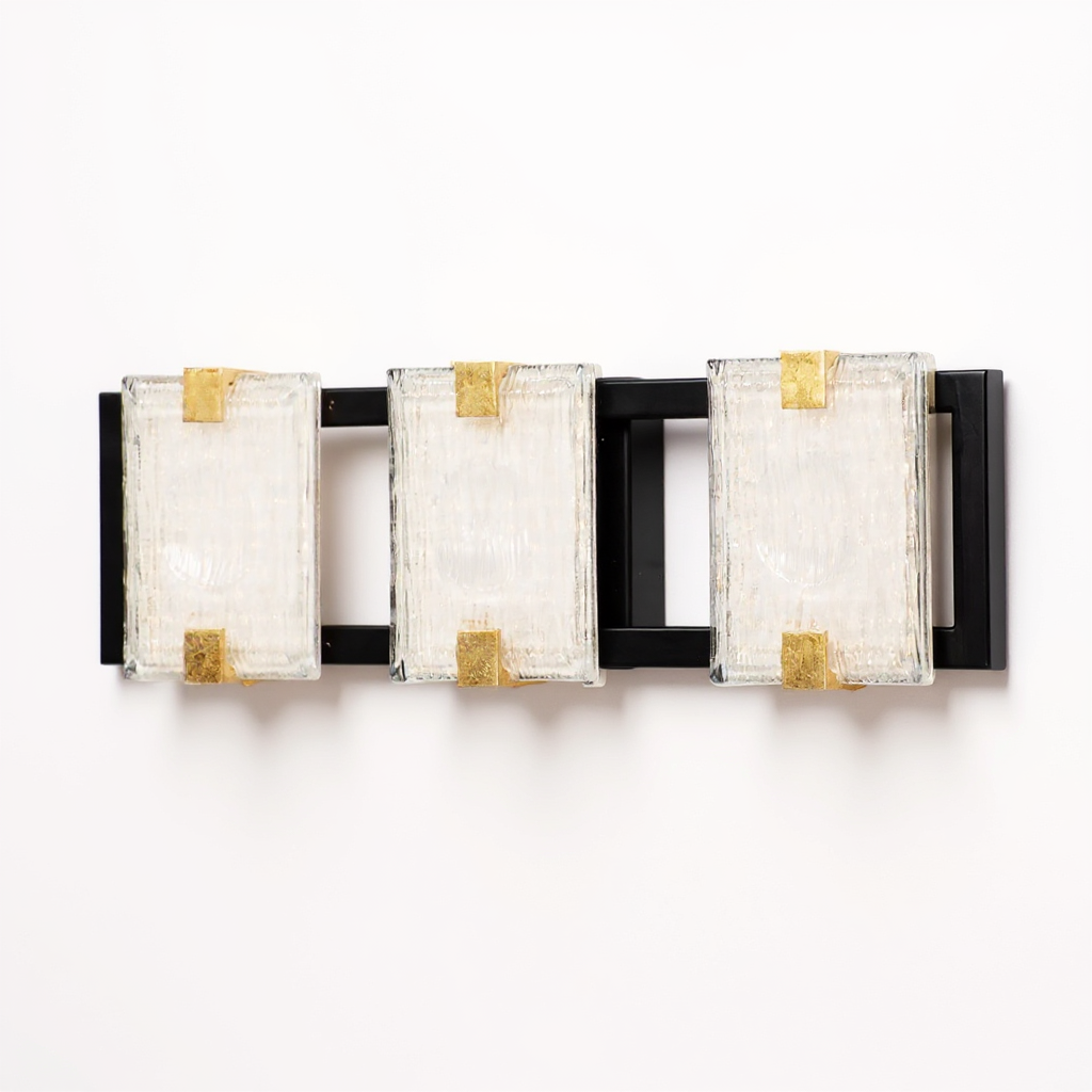 Piastra style glass diffuses integrated LED to shimmer radiantly. Suspended on a Black frame with Gold Leaf accents, this perfect blend of contemporary and traditional design adds glamour to a broad spectrum of design aesthetics.