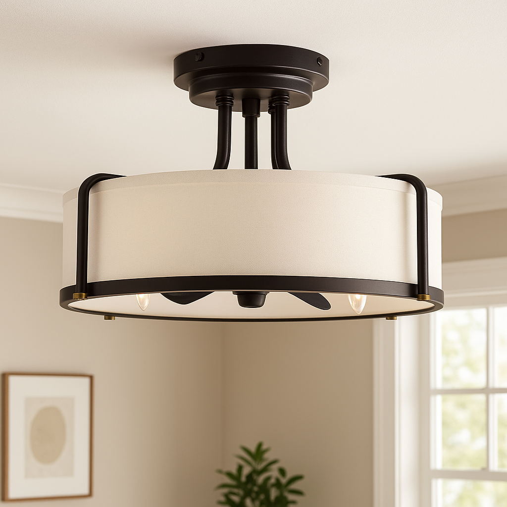 Nestled within the Calvary semi-flush mount's white fabric shade is a vintage-inspired fan, casting both a soft glow and cool, refreshing air via a three-speed, reversible motor. Crafted from steel in a handsome western bronze finish, this piece is supremely functional without sacrificing form: Calvary offers classic style in spades.