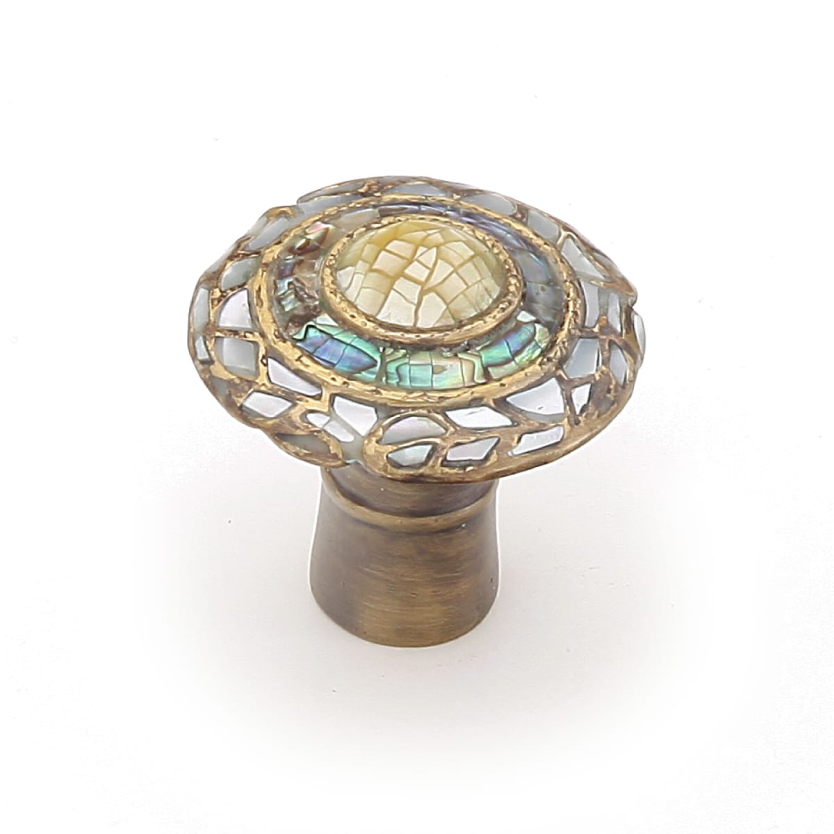 Fair Isle 1-1/8" Luxury Designer Coastal Round Solid Brass Cabinet Knob with Mother of Pearl