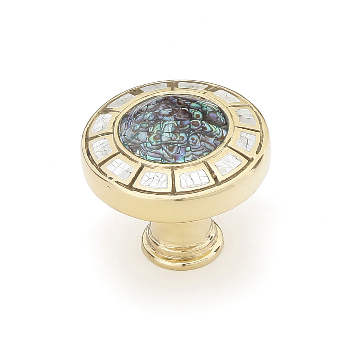 Fair Isle 1-1/2" Luxury Coastal Round Solid Brass Cabinet Knob with Mother of Pearl and Imperial Shell Inlays