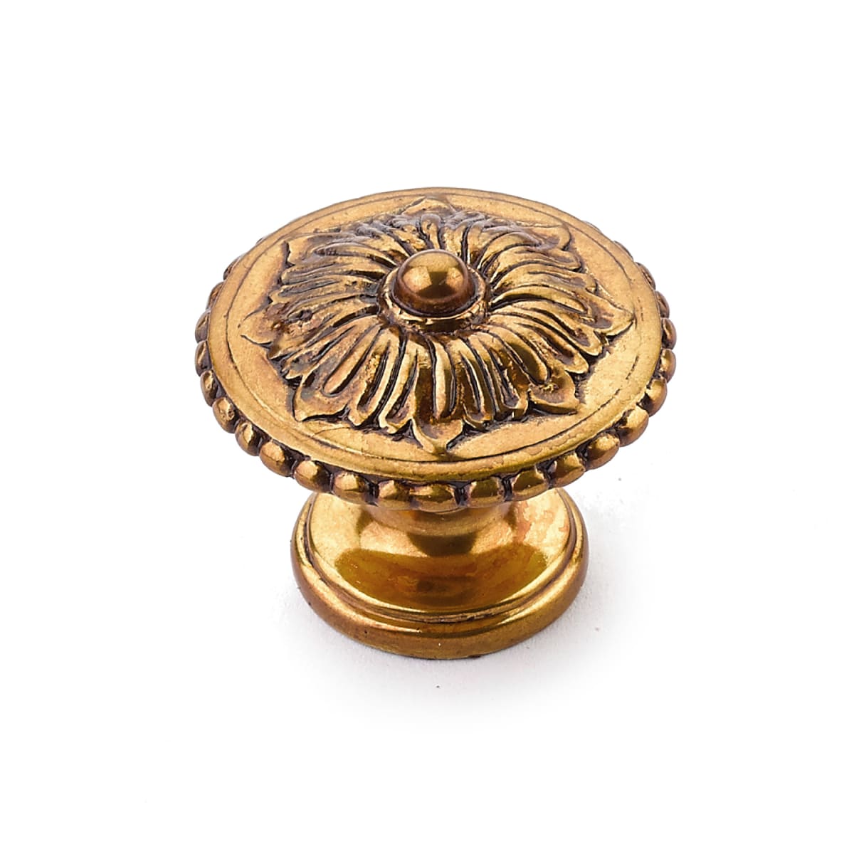 Sonata 1-1/4" Floral Round Solid Brass Sunflower Mushroom Luxury Cabinet Knob / Drawer Knob