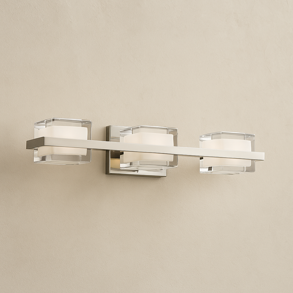 Smoothly opulent. Thick-walled shades offer beautifully diffuse illumination. The frame's elegant lines draw attention to its glass blocks, fashioning a statement of luxury for your bath.